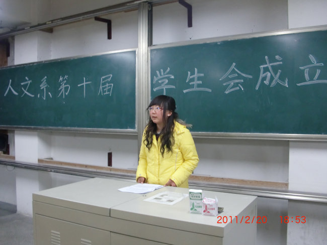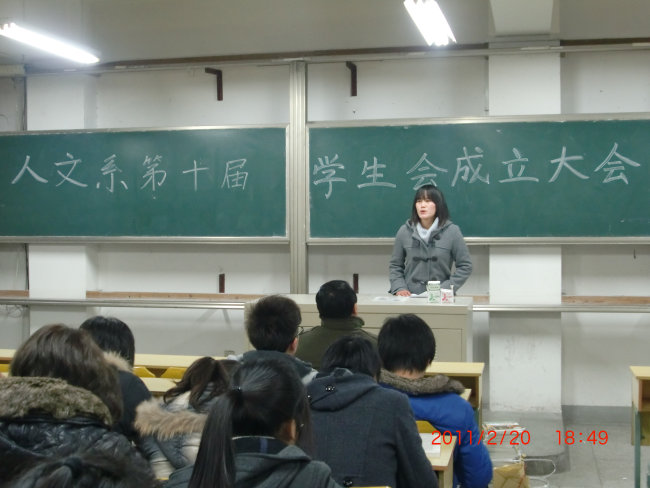 2月20日晚7点,迎春2012教室,人文系举行了简单而隆重的第十届学生会成立大会。全体学生会成员、自管会成员、各班班长和团支书出席了本次大会。
