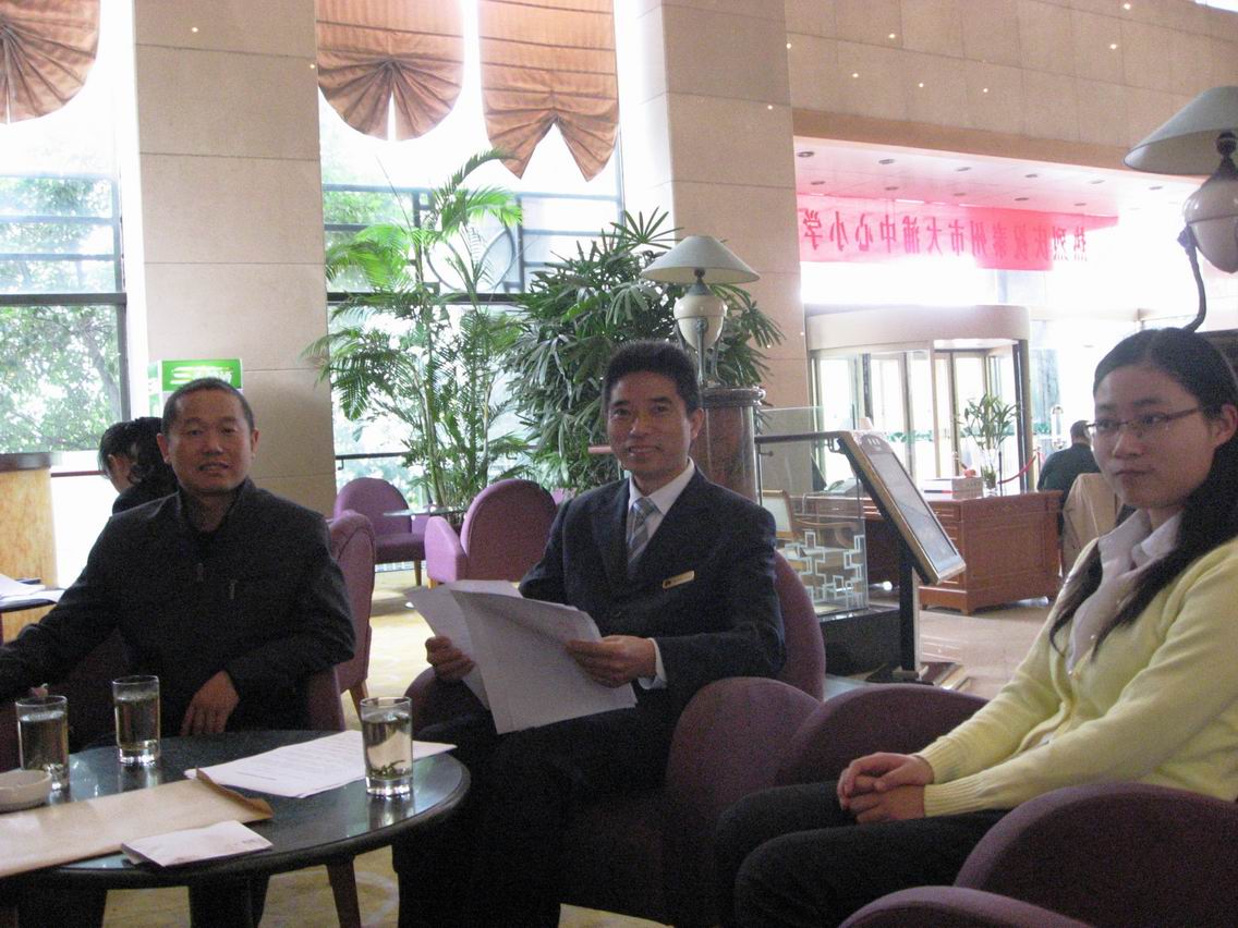太阳集团tyc539macau院长助理曹翔博士和实习单位领导亲切交谈。
