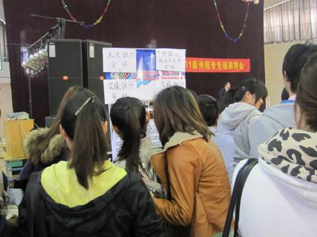 2011年11月13日上午9点半,昆山花桥国际商务城在我校春晖校区体育馆举行2011校园招聘会,人