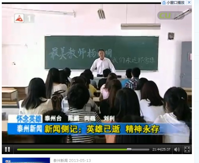 同学们纷纷走上讲台,表达对救人英雄的崇高敬意。大家表示,要把杨老师的精神传承下去,让大爱洒满泰州。泰州电视台新闻频道对本次活动做了全程报道。