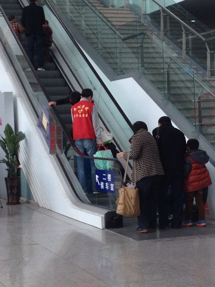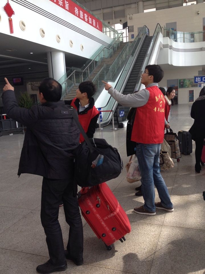早上9点,志愿者们便到达火车站,穿上统一服装、挂上工作证,紧锣密鼓的投入到服务中去。由于火车站人流量大、服务工作量也较为繁重,工作人员事先对志愿者进行了分组,按组分配任务,有的维持现场秩序,有的为旅客提供信息咨询服务,大家各司其职、认真投入。“您好!请到3号窗口买票”、“请到2楼候车室等候列车”,学生们用热情的语言和周到的服务给广大旅客留下了深刻的印象。