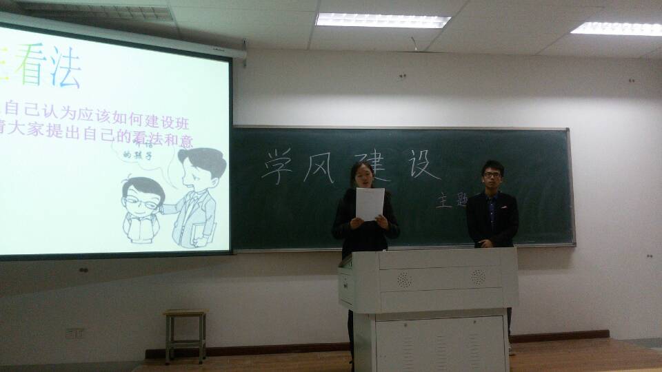 本次班会共有三个流程,由2班班长殷峰作为主讲人,通过ppt的形式向大家展示了关于学风建设的深刻内涵,优良的学风是学校培养优秀人才的重要保证。首先,他指出同学们在学风方面存在的问题并且发表了他本人对于学风建设的看法。其次,针对如何改善班级同学自身学风问题,引导同学们进行了自由发言讨论,并且邀请了2013届汉语言文学师范2班团支书赵凤娇介绍学风建设的经验。最后,两班班长共同向太阳集团tyc539macau汉师班同学郑重发出了《学风建设倡议书》,倡议提出希望大家一起努力建设良好的学风,为同学们营造更好的学习环境,得到同学们的积极响应,同学们纷纷在倡议书上签名。