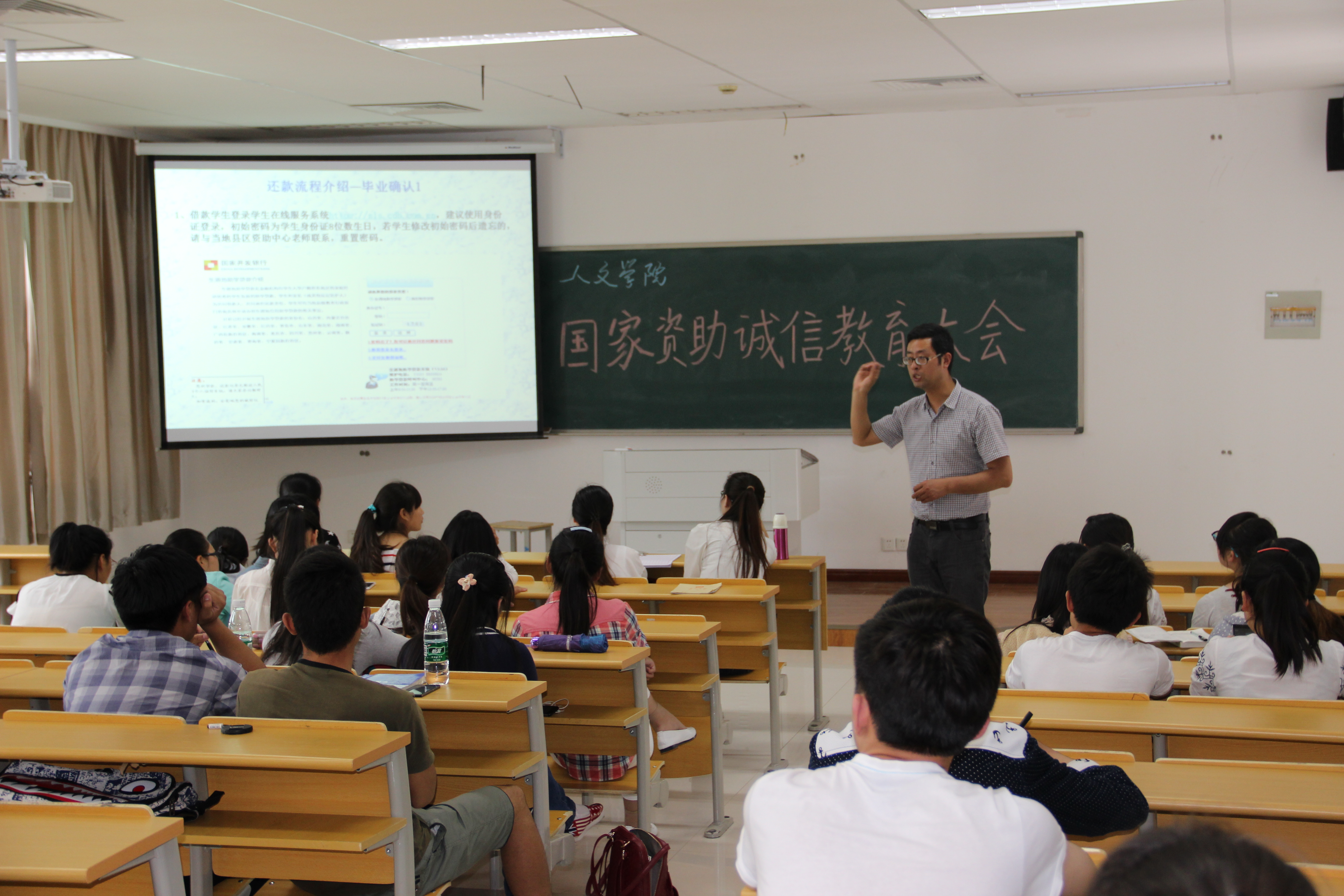 会上,周建飞首先讲解了生源地助学贷款的相关政策及注意事项,随后,他强调了诚信还贷的重要性,他列举一些身边的真实案例并进行分析,让与会学生明白违约的严重后果。他要求学生将助学贷款作为个人信用的试金石,认真经营好个人信用这个无形资产,珍惜今天,勤奋学习,用诚信回报社会,用诚信这张绿卡塑造自己辉煌的人生。