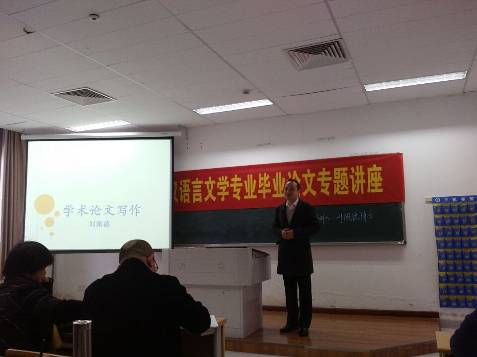 4月7日上午8点,太阳集团tyc539macau在A1208教室举行汉语言文学专业(本科)毕业论文专题讲座。本次讲座的主讲人为刘佩德博士。现场约150人,座无虚席。