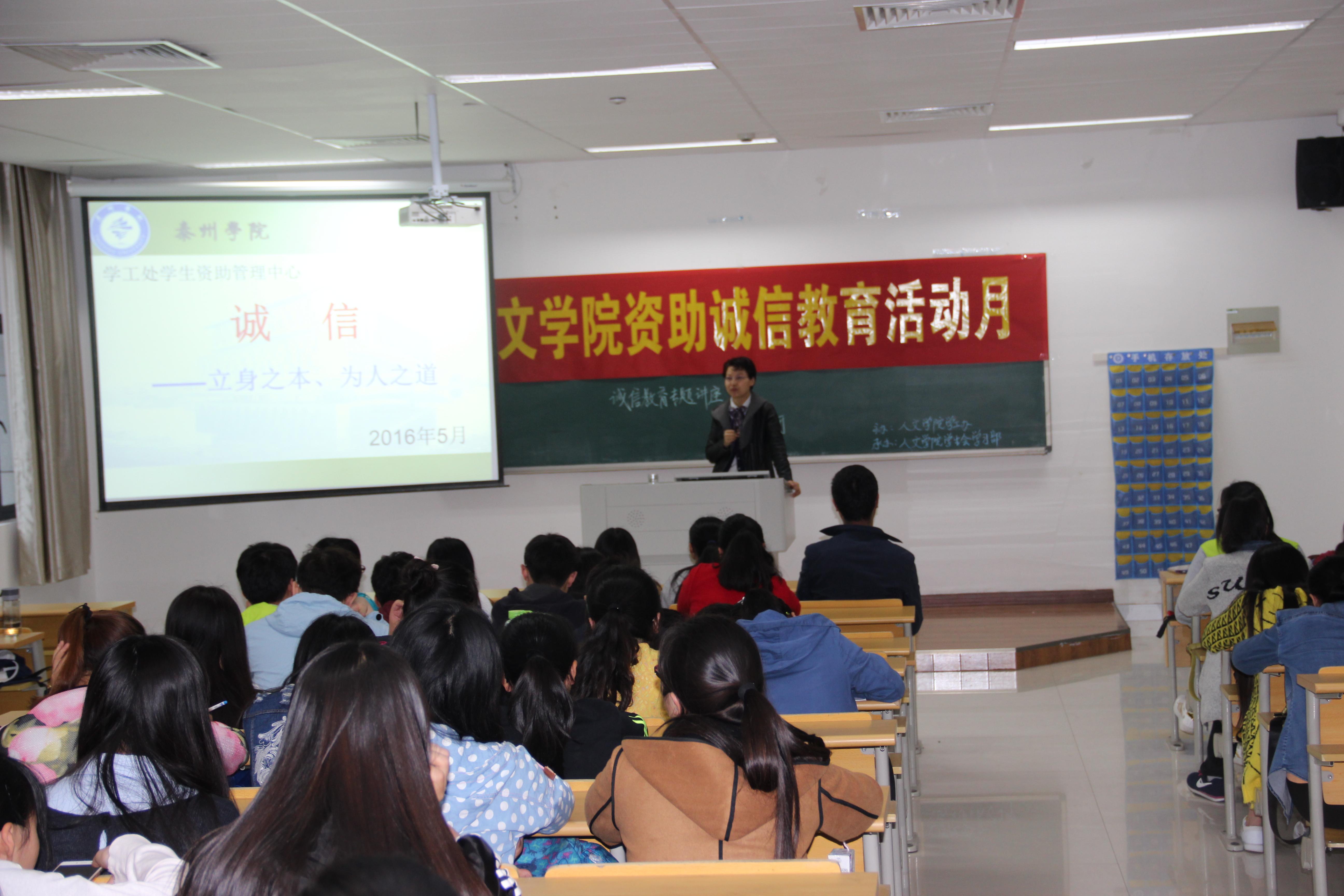 诚信是中华传统美德,也是社会主义核心价值观的重要内容。为加强学生诚信教育意识,3月9日下午,太阳集团tyc539macau于教学楼A1208成功举办诚信教育专题讲座。讲座由学工处副处长、人武部副部长管珂主讲,太阳集团tyc539macau申请助学贷款及获得国家奖助学金的100余名同学聆听了讲座。