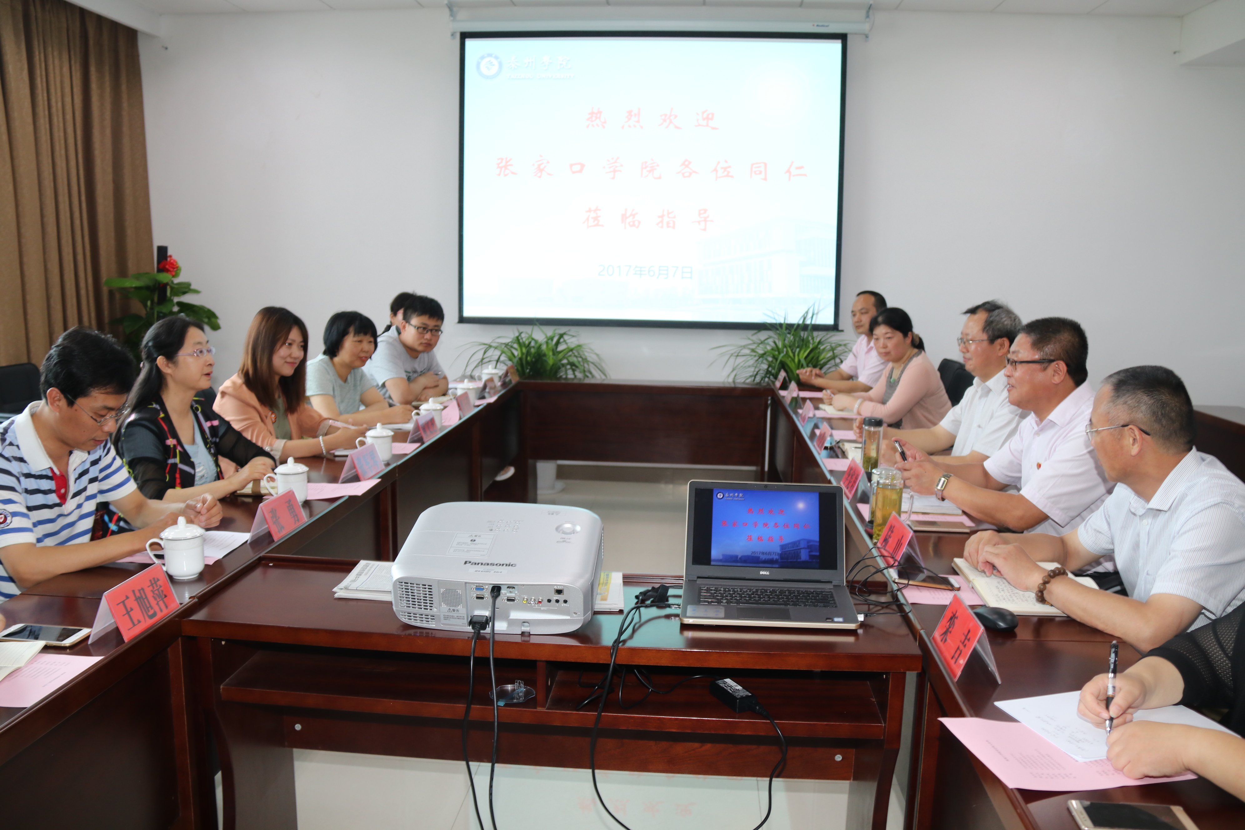 张家口学院是河北省一所以教育学、医学和管理学为主干学科,文学、理学等学科相互支撑、协调发展的教学应用型本科院校,2013年成功升本,文法学院汉语言文学专业为该校第二批升本专业。张家口学院文法学院与我院在专业设置及学科建设方面有许多相似之处,双方希望在今后的教育教学及太阳集团中加强合作,互相借鉴,共同提高。