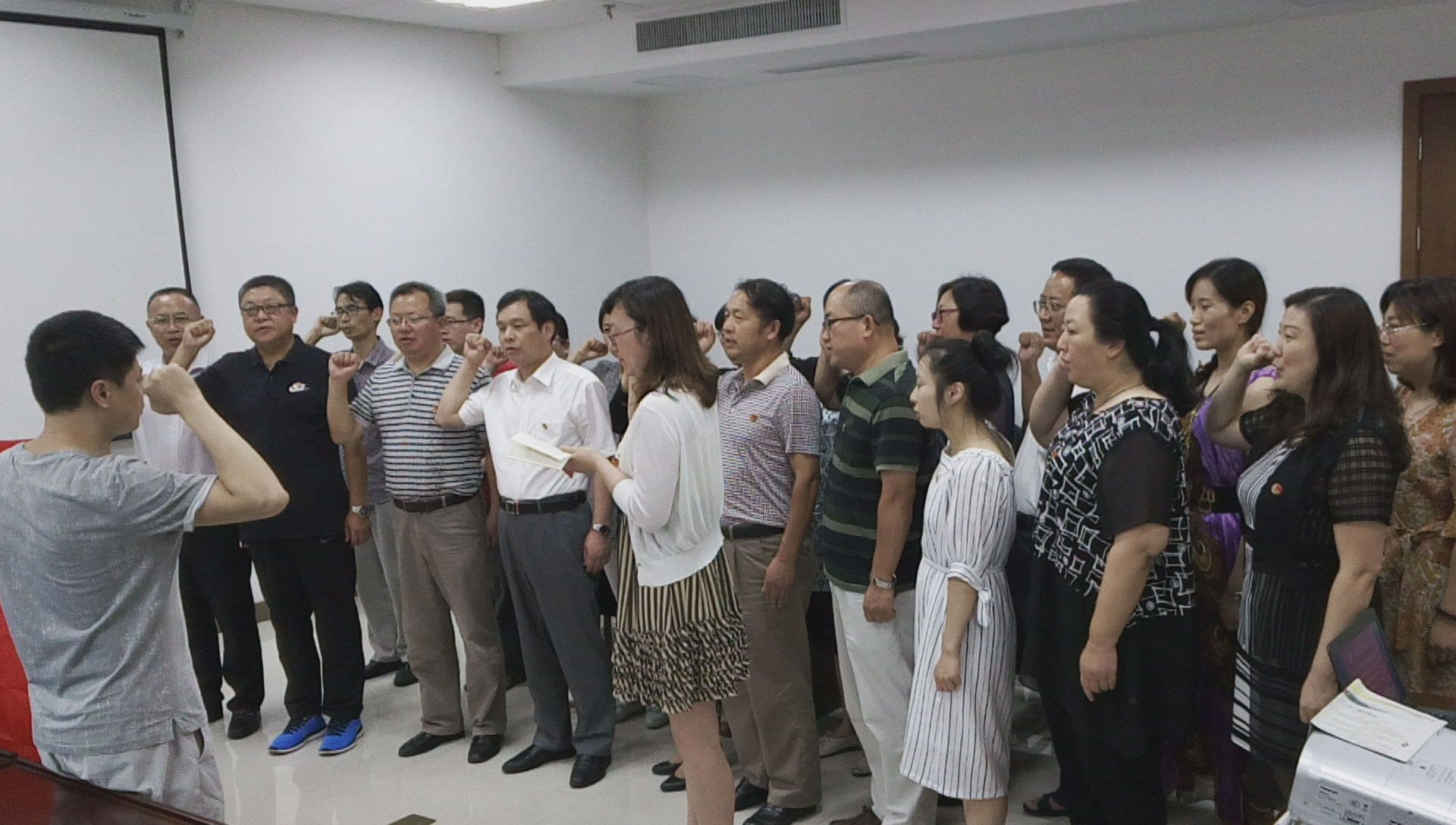 活动一开始,党员们佩戴党徽,全体肃立,齐唱《国际歌》,雄壮的歌声仿佛把大家带回到中国共产党伟大艰辛的成长历史中。接着观看了电视专题片《中国共产党与你一起在路上》及《95年的〈红色气质〉》,革命先烈们顽强的毅力和大无畏的牺牲精神激发了党员同志缅怀峥嵘岁月、珍惜美好生活的爱国主义情怀。随后在太阳集团tyc539macau党务秘书钱明芳同志的带领下,共同重温“入党誓词”,让大家找回入党之初的感动、重温宣誓入党的激情,再次表达了对党的忠诚和热爱之情。最后在《没有共产党就没有新中国》的嘹亮歌声中结束活动。