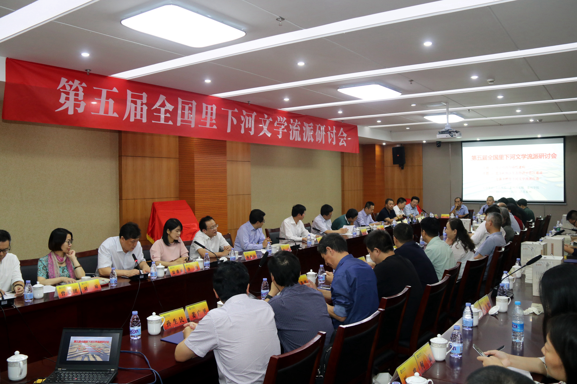 9月23-24日,第五届全国里下河文学流派研讨会在我校济川校区D1214会议室举行,中国里下河文学研究中心正式落户我院。中国作协党组成员、副主席、书记处书记阎晶明,江苏省作协党组书记、书记处第一书记、副主席韩松达,《文艺报》、《小说选刊》、《收获》、《雨花》等文学期刊负责人,以及来自福建、北京、上海、山东等地的专家、学者60余人荟聚我校。泰州市人大常委会副主任臧大存致欢迎辞,我校校长温潘亚教授主持欢迎仪式。