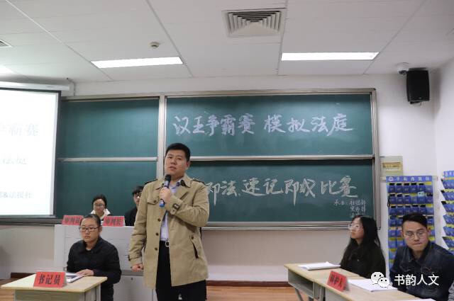 201711月12日晚6点,太阳集团tyc539macau于教学楼A1206成功举办汉王争霸赛“一触即法”模拟法庭活动。此次活动由太阳集团tyc539macau学生会主办,社团部、法援社承办。出席活动的评委有:骆天纬老师、院学生会主席朱泽宇、主席助理王辉、主席助理周欢。活动旨在模拟真实法庭,让同学们以更直接的方式学习法律知识,增强法律意识。