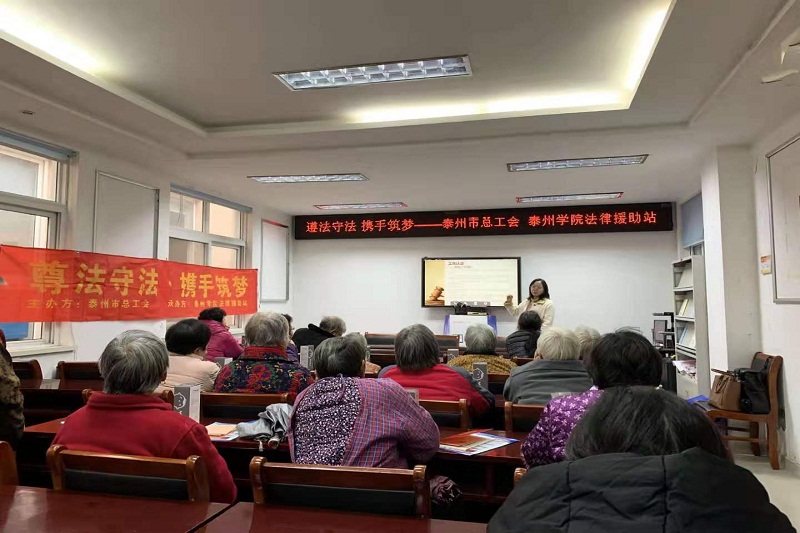 11月27日下午,我校法律援助站的师生们来到泰州沁莲社区开展了“尊法守法·携手筑梦”服务农民工法律宣讲活动。本次活动是响应全国总工会和司法部关于联合开展“尊法守法·携手筑梦”服务农民工公益法律服务行动而展开的。