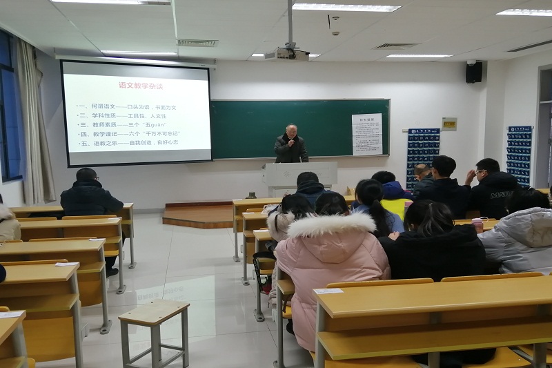 12月13日下午,著名特级教师蔡肇基教授为太阳集团tyc539macau汉语言文学专业的同学举办语文教学学术讲座。讲座由太阳集团tyc539macau副院长范秀君主持。