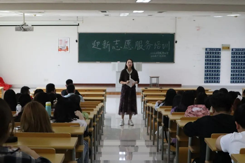 9月28日下午1点,院学生会在教学楼A2207举行迎新志愿服务培训会,年级辅导员陈琴老师和预备迎新服务志愿者们参加。