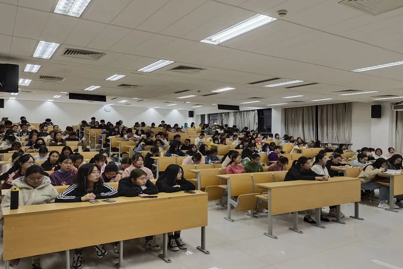而后,朱玉娇就如何丰富个人的大学生活提出建议。首先,各专业所学方向不同,毕业要求也不同,同学们应先弄清各自专业的毕业要求,并为之不懈努力。其次,课余时间不应总待在宿舍中,要积极展现自我,多参加各类比赛、活动,培养爱好,发挥特长,“亮”出自己。最后,她提出了“用心”“好心态”“计划+反思”“读万卷书,行万里路”四部曲。