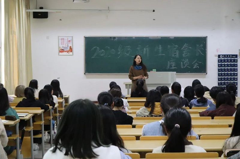 为进一步做好宿舍工作,巩固同学们的安全意识,明确宿舍长在宿舍管理中的地位,10月17日14:30, 20级年级辅导员陈琴老师在教学楼A3107召开了我院第一次新生宿舍长座谈会。