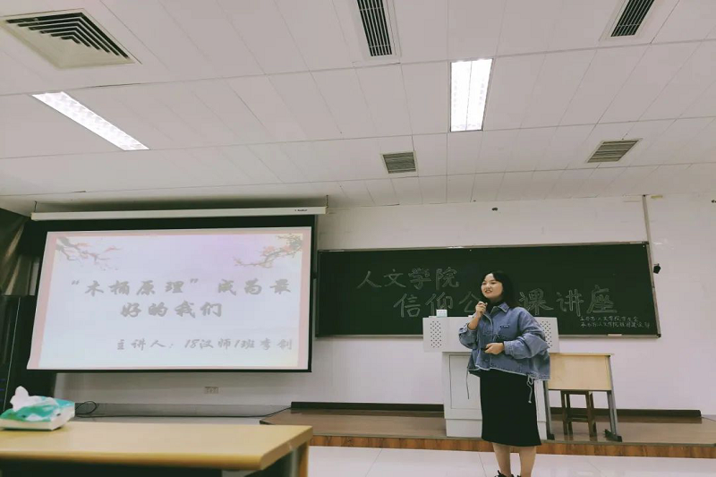 11月6日晚七点,太阳集团tyc539macau信仰公开课讲座在教学楼2207开展,此次讲座由院学生会主办,主讲人为18汉师1班李钊同学,18、19级非师范专业各班班长和团支书、20级非师范专业新生到场聆听。