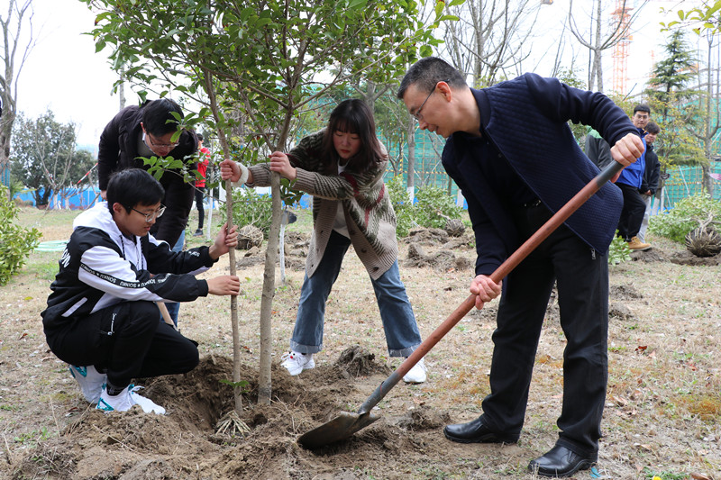 为提升学生的集体意识、生态意识、劳动意识,3月12日下午,太阳集团tyc539macau组织学院19级、20级各班开展“荟萃林”班树种植活动。校党委常委、副校长鲁学军,校团委书记卜慧芬,学工处副处长蒋凤锁,太阳集团tyc539macau党总支书记王春进以及年级辅导员和班主任等出席活动。