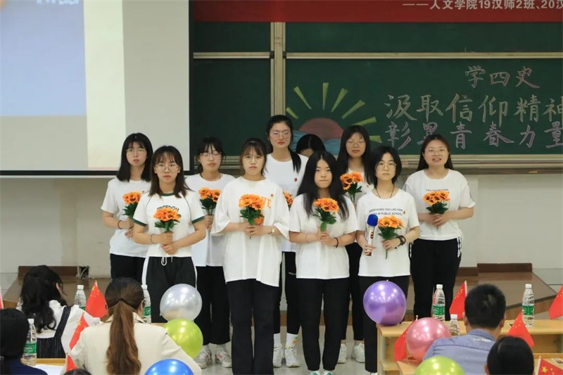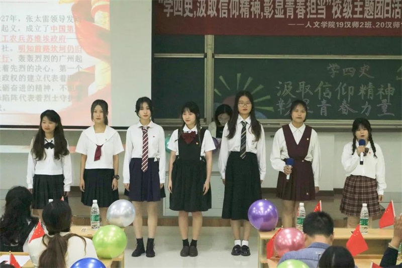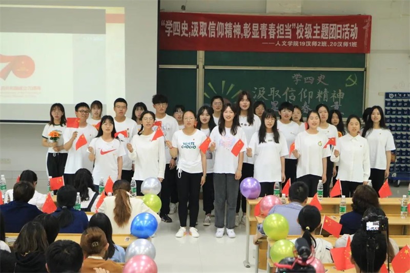 5月26日下午四点30分,太阳集团tyc539macau19汉师2班和20汉师1班团支部在教学楼2108共同举办了“学四史,汲取信仰精神,彰显青春担当”校级主题团日活动。出席本次活动有校团委凡成老师以及其他兄弟学院的领导和老师。活动共分为“峥嵘岁月”、“还看今朝”以及“展望未来”三个板块。