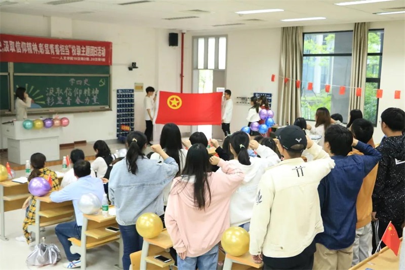 最后,17汉师1班方旭带领全体共青团员进行宣誓,同学们在铮铮誓言中表达了对党的崇敬、对国的忠诚,展现他们了积极向上的青春担当与青春力量。