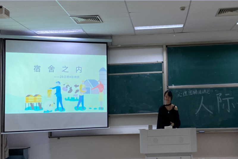 为让同学们了解怎样更好地处理好宿舍关系,陈明然讲述了宿舍关系的四个阶段,分析导致宿舍关系僵化的主要原因有舍友性格不合,观念冲突,卫生、生活习惯、娱乐等方面的琐碎小事。