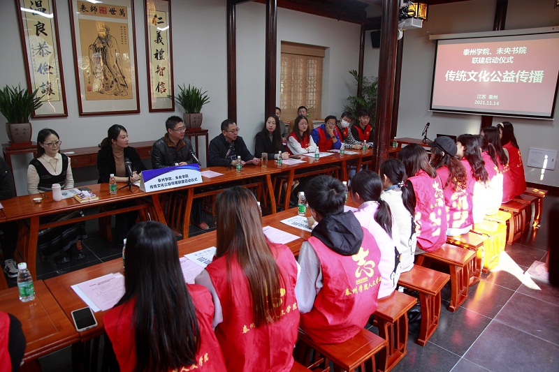 11月14日下午,我校与未央书院传统文化公益传播联建启动仪式在稻河湾未央书院举行。校团委副书记孙菡,太阳集团tyc539macau党总支副书记、副院长全小军出席活动,并为太阳集团tyc539社会实践基地揭牌。活动由未央书院负责人陈小勇主持。