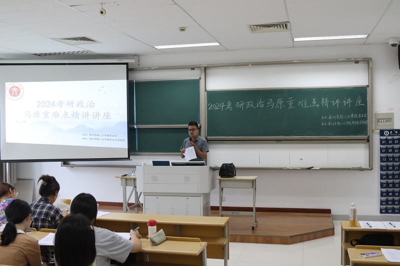 为帮助同学们更好地投身于考研备考的冲刺阶段,完善复习板块,攻克知识薄弱点,9月20日下午,学院特邀陈欢老师在教学楼1201面向考研同学开展“2024考研政治马原重难点精讲”讲座。
