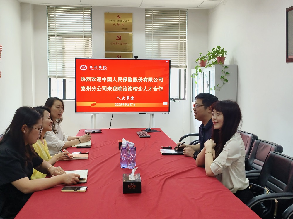 为进一步推进校企合作共赢、共谋发展的良好局面,9月17日上午,中国人民保险股份有限公司泰州分公司相关部门负责人带着就业岗位来到我院,就校企人才交流合作、推进毕业生高质量就业进行深入探讨。学院党总支副书记侯维娜、2026届毕业班班主任、辅导员参加交流。