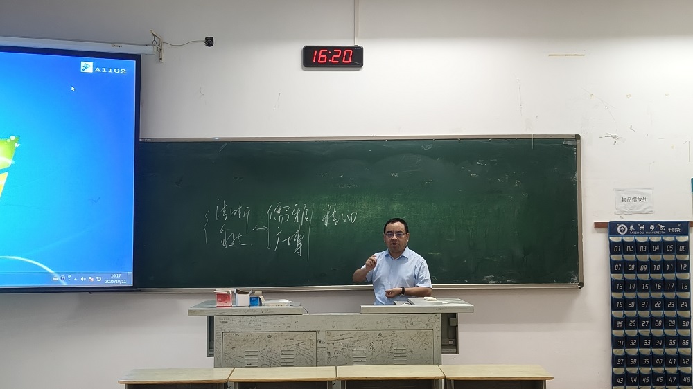 为帮助青年教师快速适应高校教学模式,搭建院内教学交流平台,10月11日下午,我院在教学楼A1102举办“泰湖论教”示范课观摩活动。学院院长钱成、副院长官小燕、院级教学督导、新进教师及学生代表等50余人参与活动。