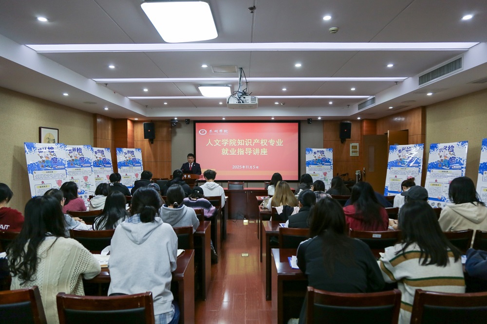 11月5日下午,应我院邀请,泰州市高港区检察院、海陵区检察院的检察官们走进学校,举办法治护航就业讲座,为2026届知识产权专业同学报考检察院公务员提供精准指导。