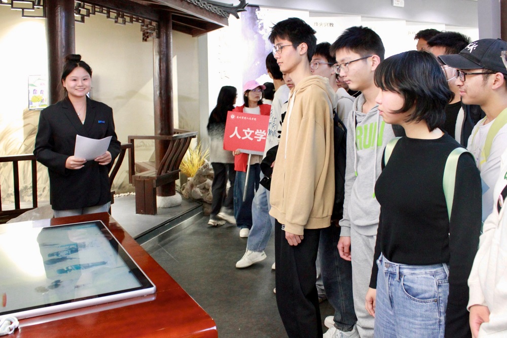随后,来访师生在我院辅导员的引导下,依次参观了我校图书馆、发展馆、教学楼及各二级学院实验实训室等场所。通过志愿者的细致讲解与现场互动,梅李高级中学的师生们对我校教学设施、校园文化及科研平台有了更为直观和深入的了解,沉浸式体验了大学的学习氛围与校园生活。