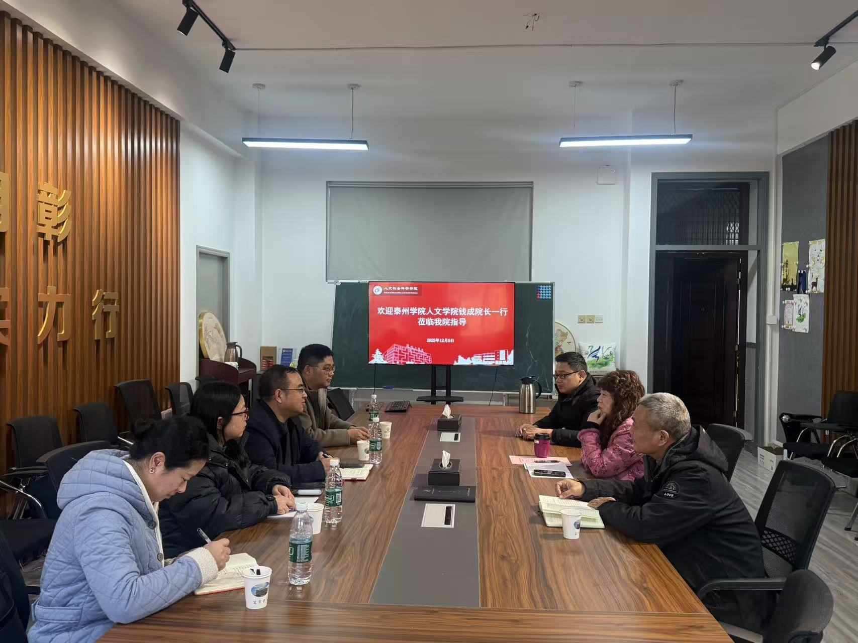 12月5日下午,为学习借鉴学科建设与发展规划经验,我院钱成院长率队,与副院长官小燕、教师代表孙利政、徐晶晶一行,赴盐城工学院人文社会科学学院调研交流。该院院长周晓燕、学术助理邢千里、中文系主任赵晶晶、实验室助理刘伟等接待并与我院一行座谈。
