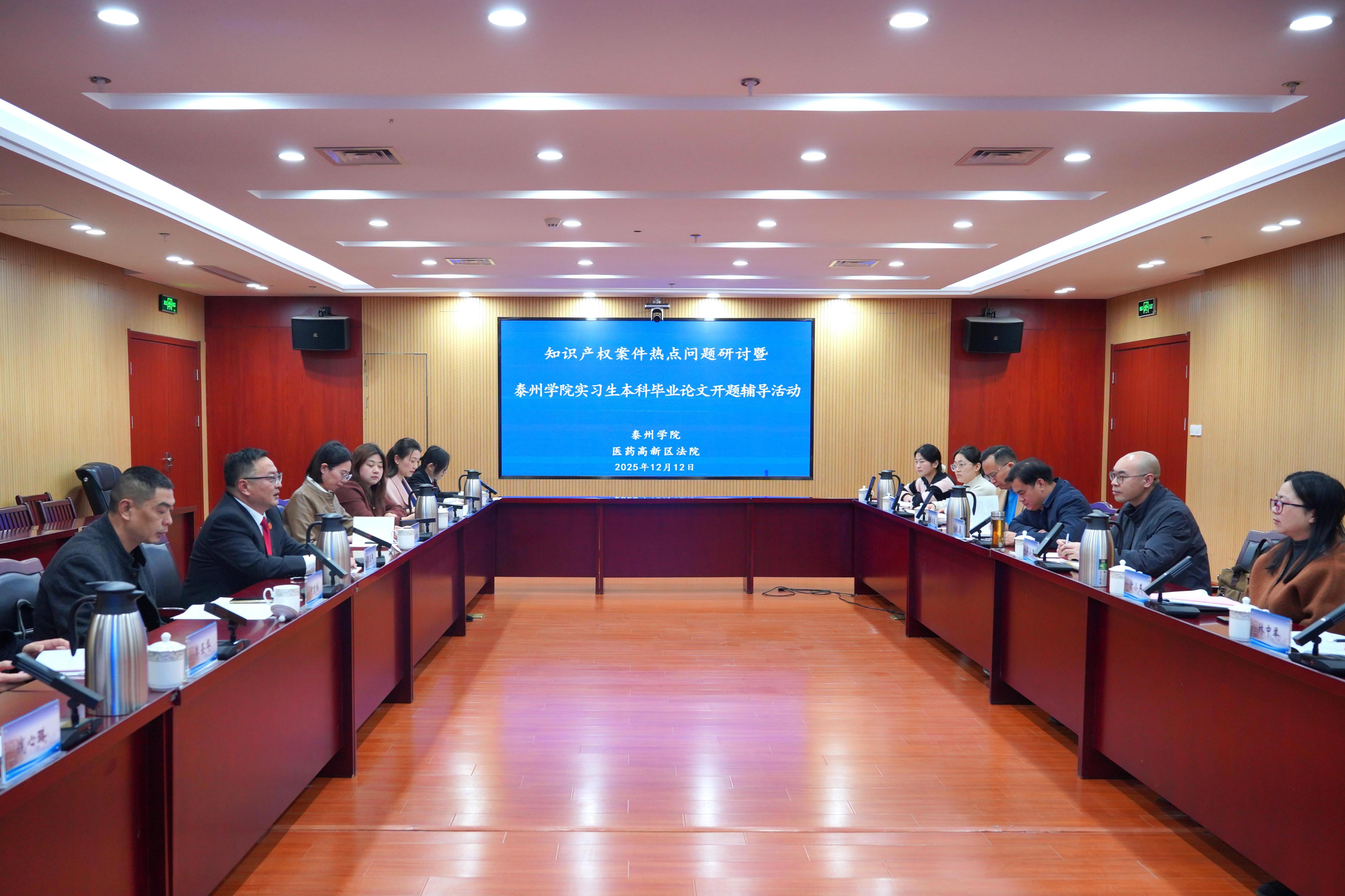 为深化校地协同育人机制,推动知识产权理论与实务深度融合,12月12日下午,我院与医药高新区法院共同举办了“知识产权案件热点问题研讨暨太阳集团tyc539实习生本科毕业论文开题辅导”教研活动。活动在医药高新区法院九楼会议室举行,来自高校、法院及相关行政管理部门的代表齐聚一堂,围绕当前知识产权领域热点问题展开深入交流,并为实习生论文选题提供实践指导。