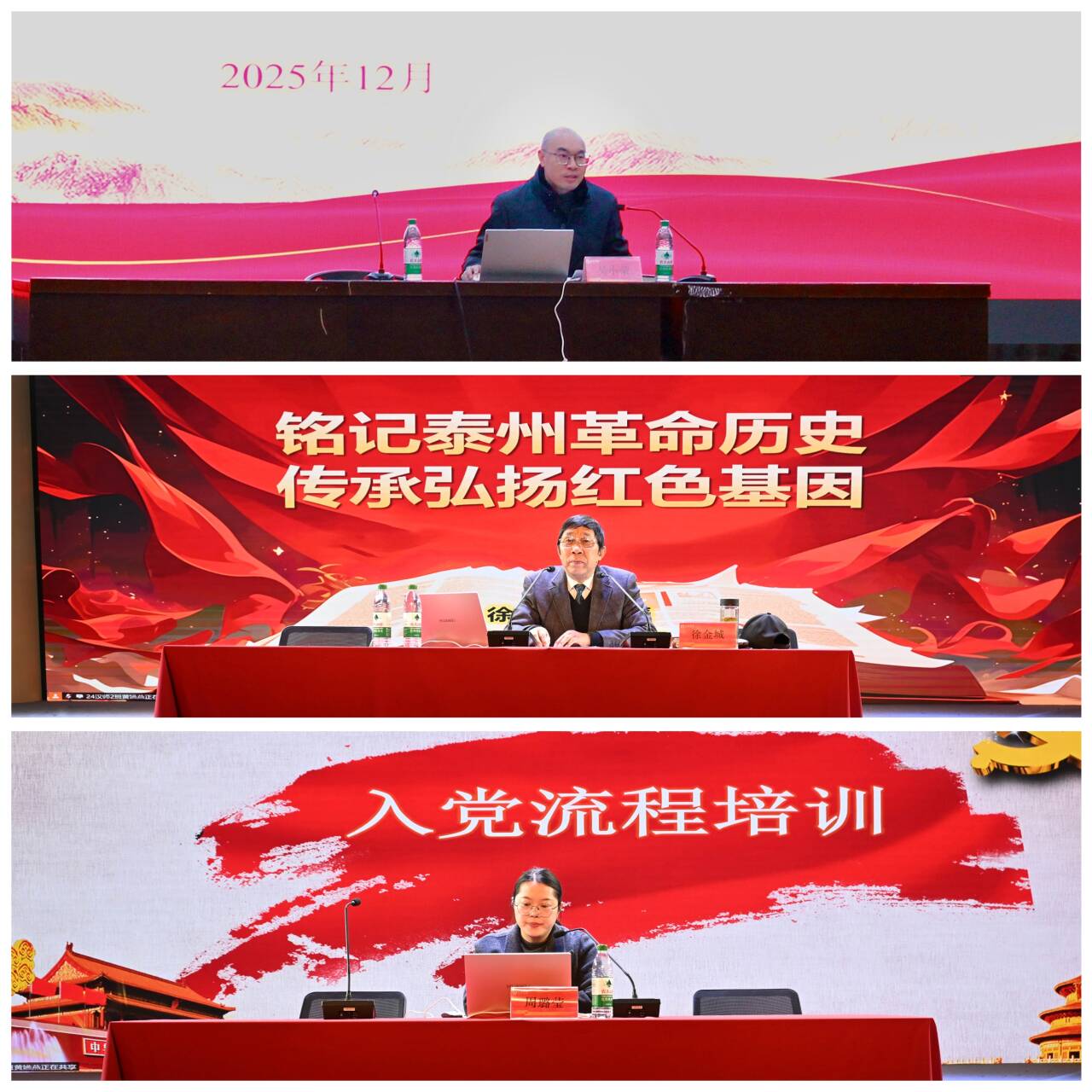 培训采取专题授课与个人自学相结合的形式。校关工委副主任徐金城以“泰州红色文化故事”为题进行授课,通过地方革命史案例阐释共产党人的初心使命;党总支书记吴小荣围绕“学习贯彻党的二十届四中全会精神”作专题辅导,系统解读核心要义与实践要求;辅导员周璐莹详细讲解了大学生入党条件与流程。此外,培训班安排学员围绕《中国共产党章程》及《习近平谈治国理政》第五卷两个主题开展自主学习,深化理论认识。