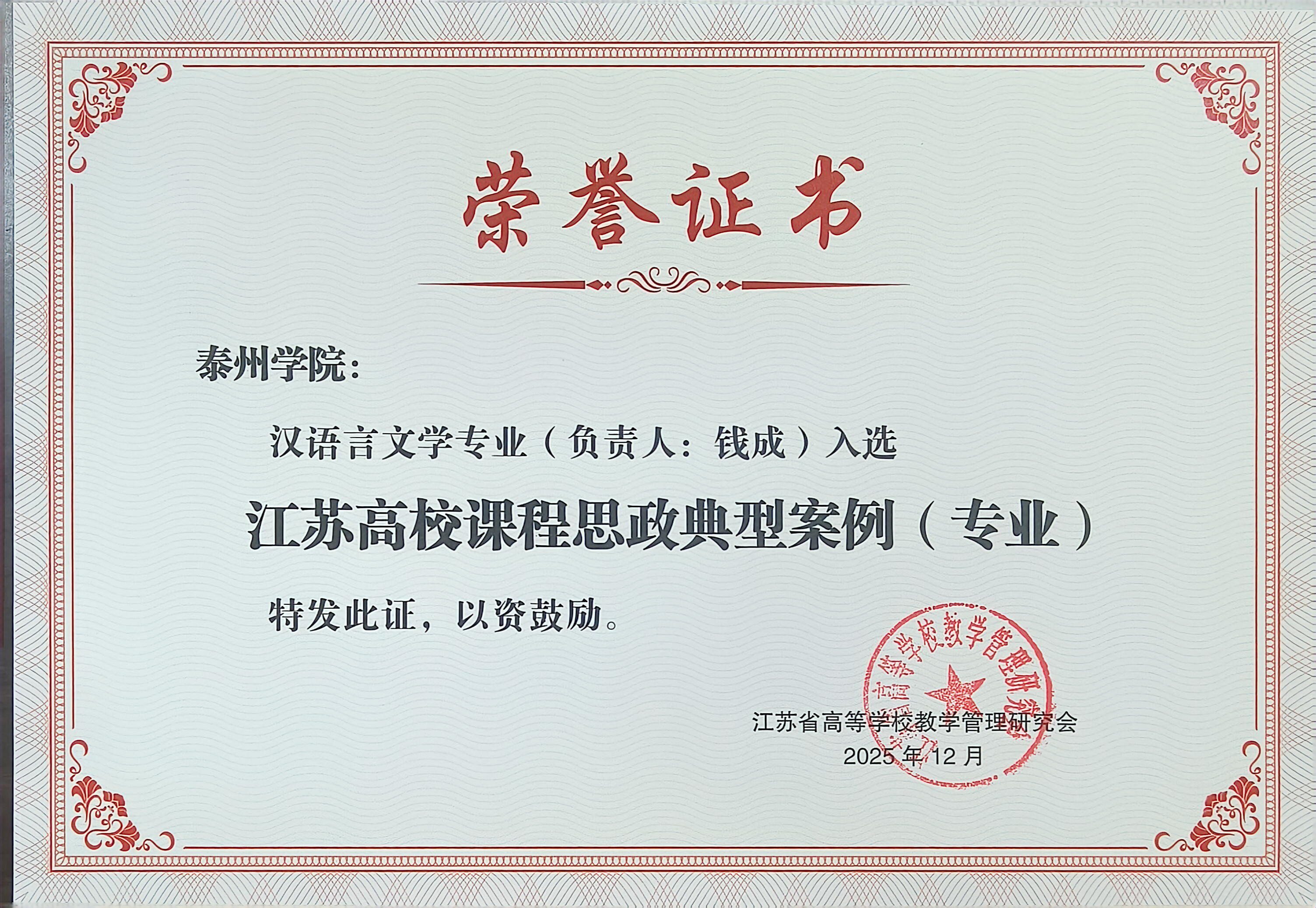 近日,江苏省高等学校教学管理研究会公布了2025年课程思政典型案例评选结果,我院汉语言文学专业成功入选课程思政专业类典型案例,实现了我院省级课程思政示范项目“零的突破”。此次入选标志着我院“学院-专业-课程”三级思政教学体系的实践成果获得权威认可。
