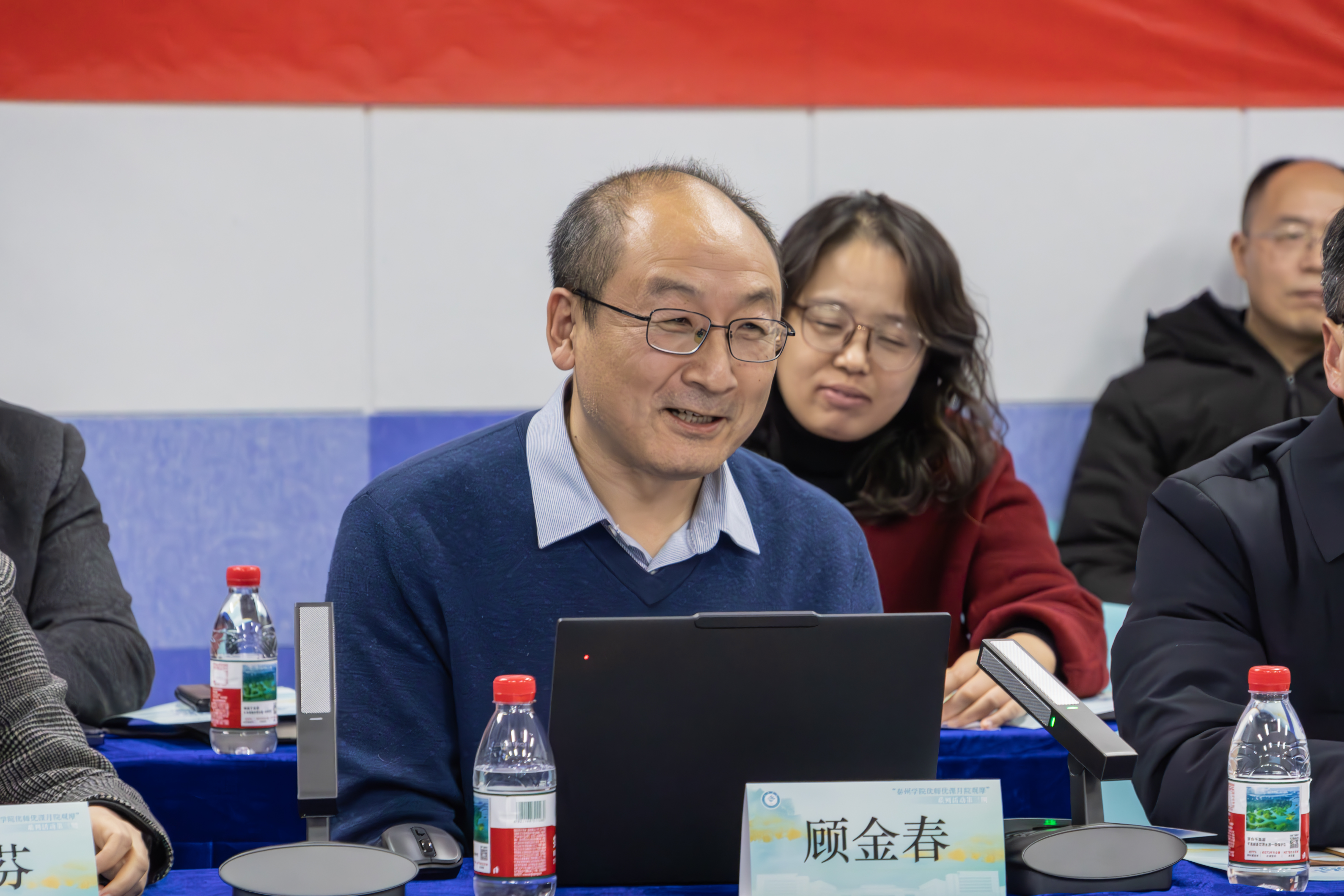活动围绕“主题报告—课程汇报—学生分享—研讨点评”展开。院长钱成在主题报告中,从课程建设、平台支撑、太阳集团等维度,系统阐述了将泰州地方文化融入教学的理念与路径,强调以文化赋能教学、落实立德树人根本任务。